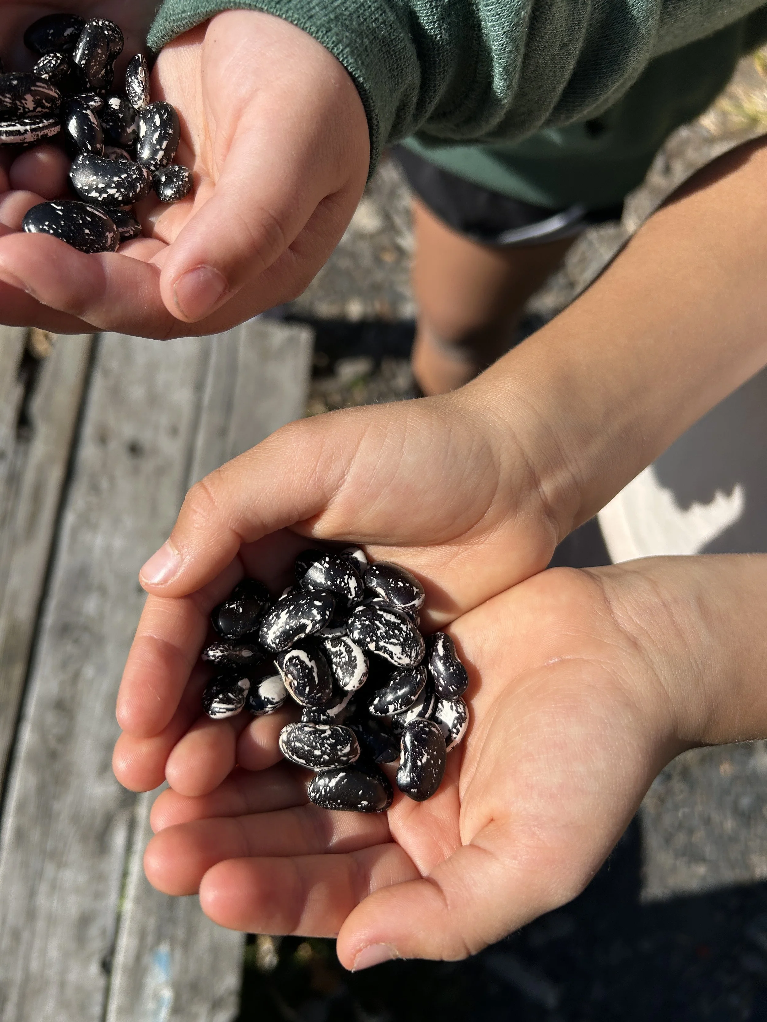 I led the Folsom 1st grade class in harvesting Abenaki skunk beans and learning about the Three Sisters. We followed much of the Three Sisters lesson from the Abenaki Foodways Project
